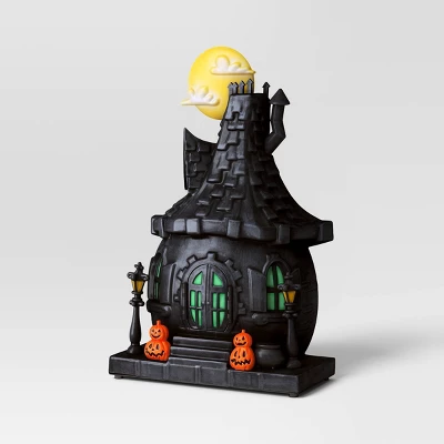 This 11.42-Inch Witch Hut Halloween Decorative Prop from Hyde and EEK! Boutiqueâ„¢ adds a magical touch to your Halloween decor. Made from plastic, this decorative prop is designed like a black witch hut with a yellow moon, green windows, and orange jack-o’-lanterns. This battery-powered prop lights up with an eerie glow and boasts musical and animated features for extra creepy-cool vibes. Place it in a cozy corner, in your entryway or on a tabletop to create a spellbinding indoor display.