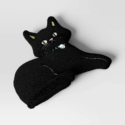This Cat Novelty Shaped Throw Pillow from Hyde and EEK! Boutiqueâ„¢ instantly upgrades your space with festive feline flair. Made of 100% polyester fleece fabric, the decorative throw pillow is shaped like a sitting black cat with embroidered accents in white and green colors sporting a white skull necklace. Set it anywhere in your house or in covered outdoor locations where you want to infuse a little extra Halloween charm and playfulness.