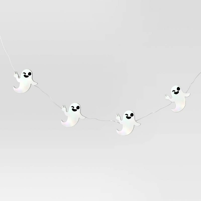 Illuminate your festive setup with the ghostly glow of these 20-Count LED 2D Iridescent Plastic Ghost With Peace Sign Halloween Dewdrop String Lights from Hyde and EEK! Boutiqueâ„¢. These decorative string lights showcase a silver-hued wire strung with white iridescent ghosts making peace signs and fitted with 20 white LED bulbs to glow up your space. Suitable for indoor and outdoor use, these battery-powered string lights are great for decorating your entryway, backyard, porch or patio for a touch of creepy-cool vibes.