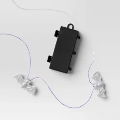 Light up the neighborhood this Halloween season with these 20-Count LED Milky Iridescent Plastic Bat Halloween Indoor Outdoor Novelty Dewdrop String Lights from Hyde and EEK! Boutiqueâ„¢. These clear plastic bats have purple bulbs and purple wire for a vibrant, scary glow. They’re suitable for indoor and outdoor use and come with a convenient 6-hours on, 18-hours off timer to ensure optimal terror, ambiance and fun.