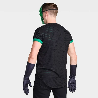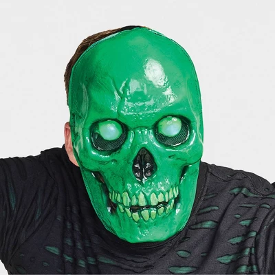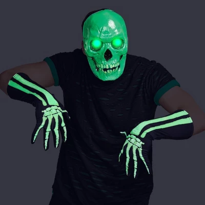 Add an uncanny, eerie vibe to your Halloween costume with this Light Up and Glows Under Blacklight Haunted Skeleton Costume Accessories Kit from Hyde and EEK! Boutiqueâ„¢. This costume kit includes a mask and a pair of gloves in green and black hues that light up with a switch, adding a creepy touch to your Halloween festivities. Pair these accessories with a horror-themed costume for an outfit ideal for Halloween parties, dress-up events, stage plays, and more