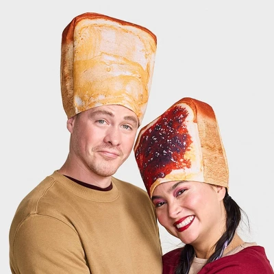 Spread the Halloween fun with this PB & J Costume Accessory Kit from Hyde and EEK! Boutique™. Made from polyester, this adult headgear set includes two hats — one designed like a bread slice with peanut butter and the other with jelly topping, perfect for creating a cute and coordinated couple look with your partner or bestie. Throw it on with any dress for an easy last-minute costume, or get more elaborate with matching costumes and accessories.