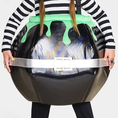 Your child will be ready to stir up potions and brew magic in bewitching style with this Halloween Costume and Witch Cauldron Accessory Set from Hyde and EEK! Boutiqueâ„¢. Made from polyester, this wearable accessory kit includes a black-and-green witch cauldron with silver glitter belt accent and black suspenders, plus a classic pointy hat in black with a gold-color buckle. Whether they go from door to door to cast playful spells or to get candy, this kit is sure to make them the cutest spellcaster in the neighborhood.