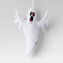 This 3.5-Foot Hanging Ghost Inflatable Halloween Decoration from Hyde and EEK! Boutique™ makes a fun, frightening statement in your front yard, entryway and beyond. Made from polyester, this decorative inflatable prop is designed to resemble a white ghost with black and red features. It’s shown hanging with outstretched arms for a standout creepy look. Display it indoors or outdoors to help welcome trick-or-treaters to your haunted home.