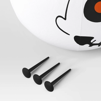 Brighten your scary-season decor with this 35.43-Inch Oversized Skeleton Halloween Decorative Prop from Hyde and EEK! Boutiqueâ„¢. Made from plastic, this decorative prop showcases an oversized globular silhouette adorned with a skeleton face with black features and red eyeballs. This inflatable prop is battery powered and lights up with either a solid steady light or a color-changing light with a timer function for customizable display options in indoor and outdoor spaces.