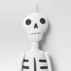 Welcome guests or trick-or-treaters with the 36-Inch Knit Skeleton Halloween Decorative Sculptures from Hyde and EEK! Boutiqueâ„¢. Showcasing a knitted design in white with black accents, this skeleton sculpture features eyes, nose, mouth and ribcage detailing. You can place it sitting on a mantel or shelf, or hang it from a hook using the built-in loop.