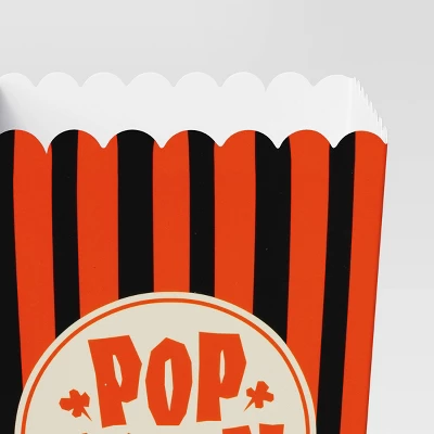 Make a ghastly good impression by serving delicious snacks to your family and party guests in this 4-Count Striped Square Popcorn Bucket Disposable Carrier Pack from Hyde and EEK! Boutiqueâ„¢. Made from paper, this pack of square popcorn bucket carriers features orange and black striped patterns to add a classic touch to your celebrations. Plus, you can simply toss the disposable buckets in the trash when the revelries are over to make post-party cleanup a breeze.