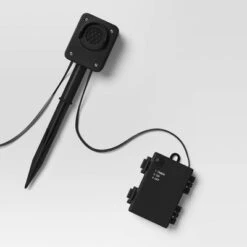 Bring Halloween festivity and charm to your front yard or haunted house setup with these 4-Piece LED Animated Halloween Pumpkin Silhouette Stake Lights with Monster Mash Music White from Hyde and EEK! Boutiqueâ„¢. These plastic lights feature lit-up orange jack-o’-lanterns and a motion sensor that triggers eerie music to scare and delight trick-or-treaters or passersby. The lights come with four stakes for indoor and outdoor placement, a 6-hour on/18-hour off timer, and require three AA batteries (not included).