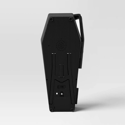 Add a classic graveyard horror to your indoor Halloween display with this 4.92-Inch Light and Sound Skeleton in Coffin Halloween Decorative Prop from Hyde and EEK! Boutiqueâ„¢ . Made from plastic, this Halloween decorative prop showcases a white skeleton inside a black coffin. It has color-changing lights and plays four sound scripts for enhanced eerie vibes. Place this battery-powered prop solo or pair it with other Halloween props to create a creepy-cool scene anywhere inside your home.