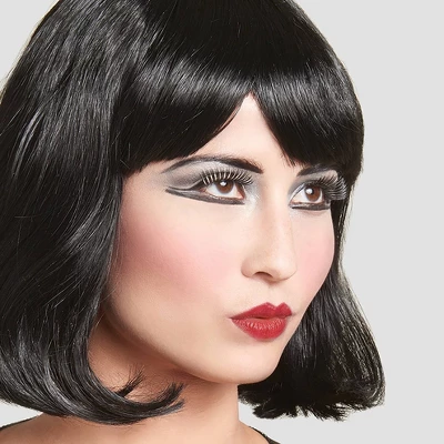 Put the perfect finishing touch on your flapper costume this year with the Black Flapper Halloween Wig from Hyde and EEK! Boutiqueâ„¢. Styled in a classic shoulder length style, this black bob wig with bangs has that vampy flapper look you’ll absolutely love, and the synthetic fiber holds up party after party for long-lasting use. Simply pair this wig with a spangly shift dress and a bold lip for a costume that’s sure to keep you dancing all night.