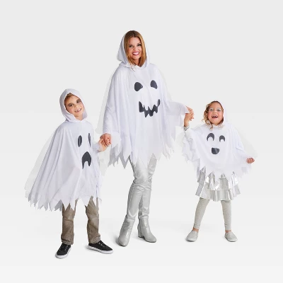 Create a creepy Halloween look with the Adult Ghost Halloween Costume Cape from Hyde and EEK! Boutiqueâ„¢. This white capelet features a smiling ghost’s face on the front for an eerie appeal. Made from lightweight material, this cape with a hood is the perfect pick to get ready for Halloween celebrations in no time.