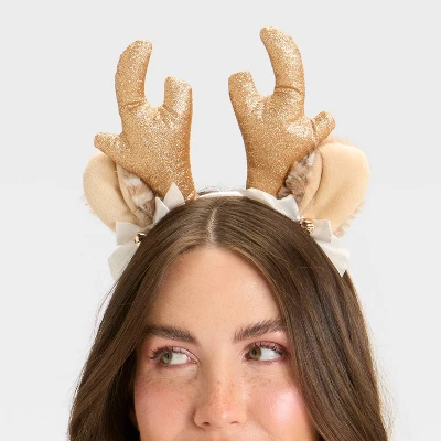 Add a finishing touch of woodland magic and sparkle to your costume by wearing this Adult Halloween Deer Costume Headband from Hyde and EEK! Boutiqueâ„¢. Made from plastic and polyester, this headband features shiny golden antlers perfect for costume parties, holiday events and imaginative props.