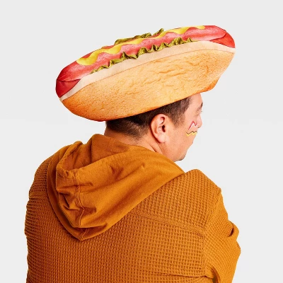 Express your love for food through this Hot Dog Hat Costume Headwear from Hyde and EEK! Boutiqueâ„¢. Made of polyester, this costume hat is designed as a hot dog in multicolor hues, adding a playful touch to your overall look. Pair it with fun costumes and footwear for dress-up events, Halloween parties, plays and more.
