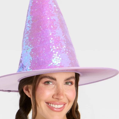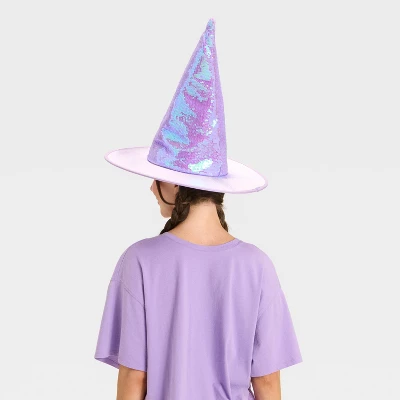 You’ll be ready to cast a shiny spell by accessorizing with this Iridescent Sequin Witch Hat Costume Headwear from Hyde and EEK! Boutiqueâ„¢ . This lavender witch hat is made from polyester and has a pointy crown embellished with iridescent sequins, complemented by a flat base in a matching plain shade. Whether you’re creating a light and bright costume or going for a dark twist, this pull-on hat is a versatile, easy-to-wear accessory for Halloween and beyond.