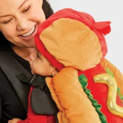 Dress up your baby for Halloween and carry them around with the Baby Hot Dog Infant Carrier and Hat Halloween Costume from Hyde and EEK! Boutiqueâ„¢. Designed in the shape of a hot dog, this baby carrier costume includes a hat for complete coverage and a cute style. Made with soft and lightweight fabric, this carrier and Halloween costume is a great way to make your little one’s first Halloween comfortable and fun.