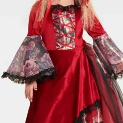 Get your kid ready for Halloween in swashbuckling style with the Burgundy Bloom Pirate Kids’ Costume Dress from Hyde and EEK! Boutiqueâ„¢. This kid’s costume dress includes a pirate bandana and dress in red with mesh accents and floral sleeves. Made of soft polyester fabric, the pieces will help them stay comfy during the Halloween party or trick-or-treating.