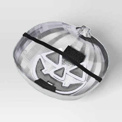 Add a shiny touch to your costume with this Disco Pumpkin Adult Mask from Hyde and EEK! Boutiqueâ„¢. This silver tone mask is designed in the shape of a pumpkin with jack-o’-lantern face boasting a disco-inspired theme. Plus, it features back elastic, allowing for a customizable fit. Pair it with other matching accessories to complete your ensemble for disco-themed events, costume parties and more.