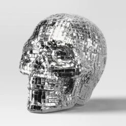 Add glam macabre vibes to your Halloween decor with this Polyresin Mirrored Electroplate Skull Figurine from Hyde and EEK! Boutiqueâ„¢. The Halloween figurine features a decorative skull coated with silver-toned metallic electroplating, giving it a glossy, mirror-like reflective look. Made of styrofoam, this six-inch skull instantly adds gothic shine to your mantel, bookshelf, entryway console, or living room center table.