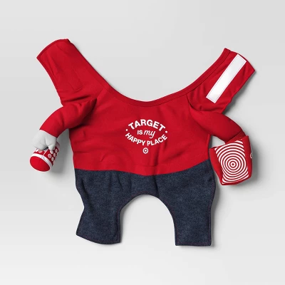 Show off your love for shopping by dressing your pet in the Target Shopper Walker Cat and Dog Frontal Costume from Hyde and EEK! Boutiqueâ„¢ for Halloween. This red frontal costume showcases a hand holding a cup and another hand holding a shopping bag with the bullseye logo. The costume features the message “Target is my Happy Place” for extra fun. Tailored with soft fabric for comfortable wear, this pet costume is easy to secure around their body with the hook-and-loop closure.