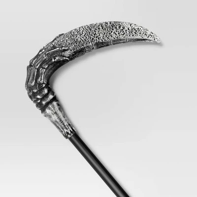 Complete their costume for Halloween and beyond with this Deluxe Reaper Sickle from Hyde and EEK! Boutiqueâ„¢. This Halloween prop features a long black handle with a skeleton hand at the top that extends to form a sickle. The raw finish adds a creepy feel, and the long handle allows easy carrying. Suitable for ages eight and above, this reaper sickle is ideal for Halloween parties, role-play, and more.