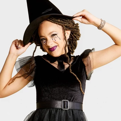 Transform your child into a cute, bewitching spellcaster with this Gothic Witch Costume from Hyde and EEK! Boutiqueâ„¢. Made from polyester, this two-piece set includes a black dress with mesh ruffles and flutter sleeves, and a pointy hat in solid black. The costume helps to make your kid’s trick-or-treating experience even more enchanting and memorable as they bring joy and excitement to every doorstep they visit.