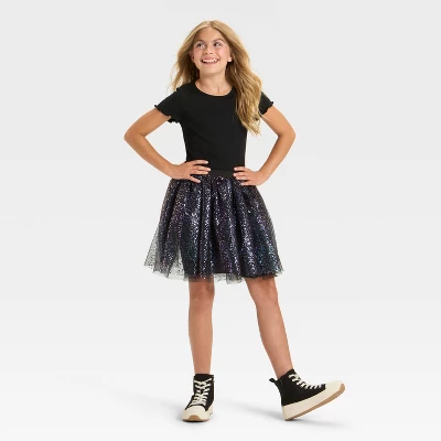 Give your kid’s Halloween look an otherworldly glow-up with this Iridescent Costume Tutu from Hyde and EEK! Boutiqueâ„¢. Made from 100% polyester fabric in black with a multi-hued sheen, this iridescent tutu is the perfect accessory for trick or treating, Halloween parties, or playing dress-up and is sized for ages 8 and up.