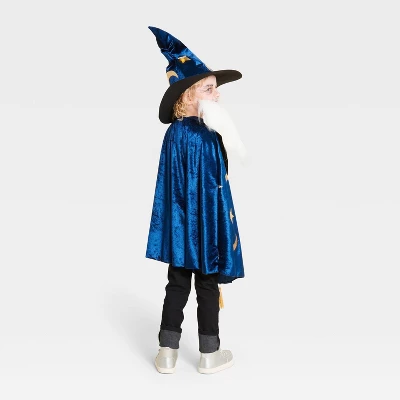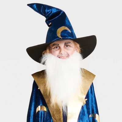 - Includes a beard, a cape and a hat
