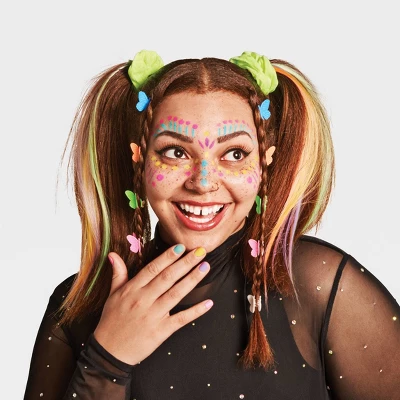 Enhance your Halloween ensemble effortlessly using this Mini Just Add Water Halloween UV Neon Makeup Kit from Hyde and EEK! Boutiqueâ„¢. This UV neon-palette makeup kit comes with a brush and four pots of water-activated colors in pink, yellow, blue and purple. Whether you’re transforming into a beautiful butterfly or a mesmerizing mermaid, this set has you covered in style.